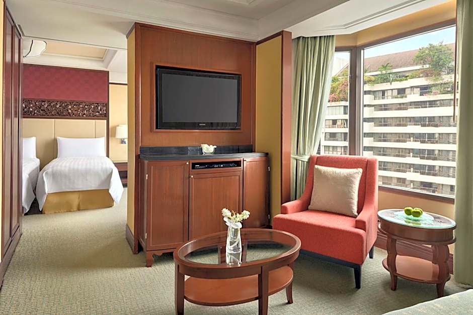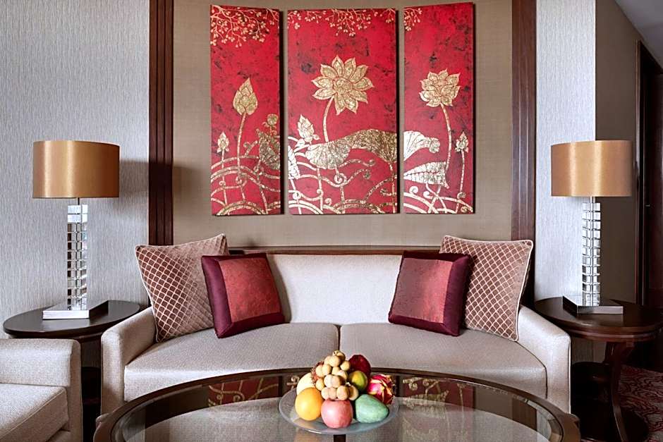 Showcasing contemporary decor with Thai decorative motifs, colorful hand-crafted artwork and wooden furniture, this premier room features partial views of the Chao Phraya River. The marble-floored bathroom comes with separate rain shower, plush bathrobes, slippers and premium Shangri-La toiletries. A separate living room features a sofa bed for guests' convenience.