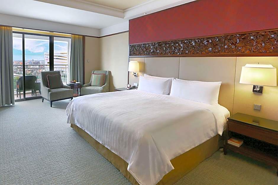 Featuring contemporary décor and carved Thai-style motifs, this 42-sqm room comes a private balcony with panoramic views of the Chao Phraya River. An en suite marble-floored bathroom includes bathrobes, slippers and Shangri-La toiletries.